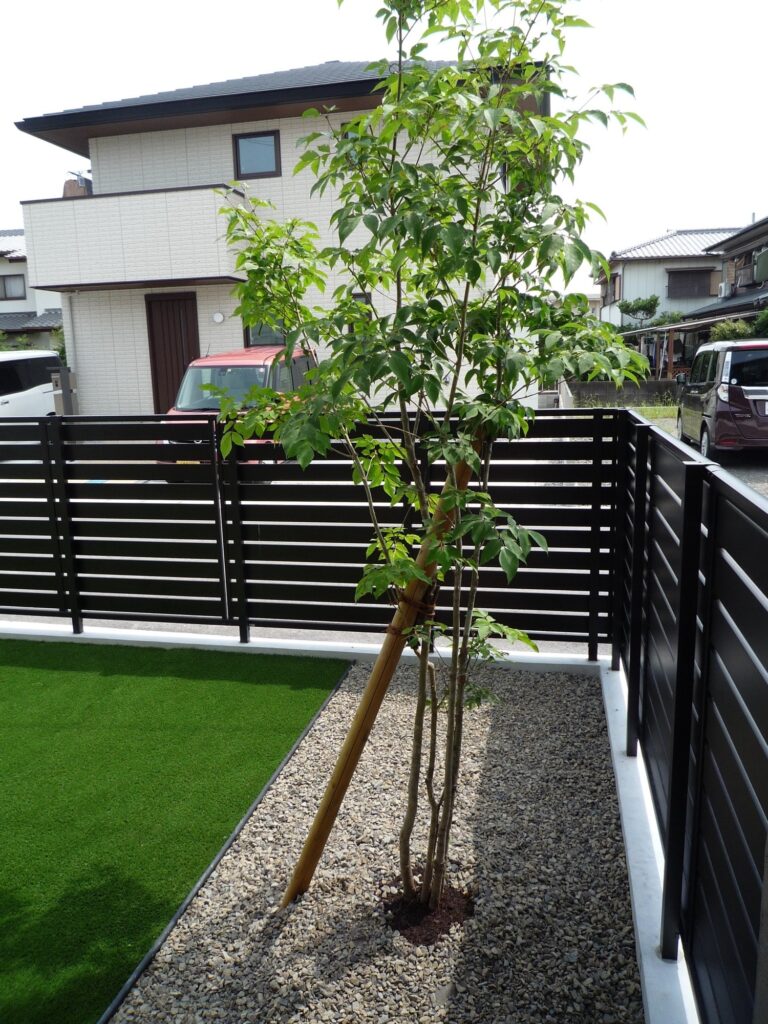 枝葉が軽やかなので、圧迫感がなく、玄関先や駐車場横など限られたスペースにも植えやすいのが魅力です。