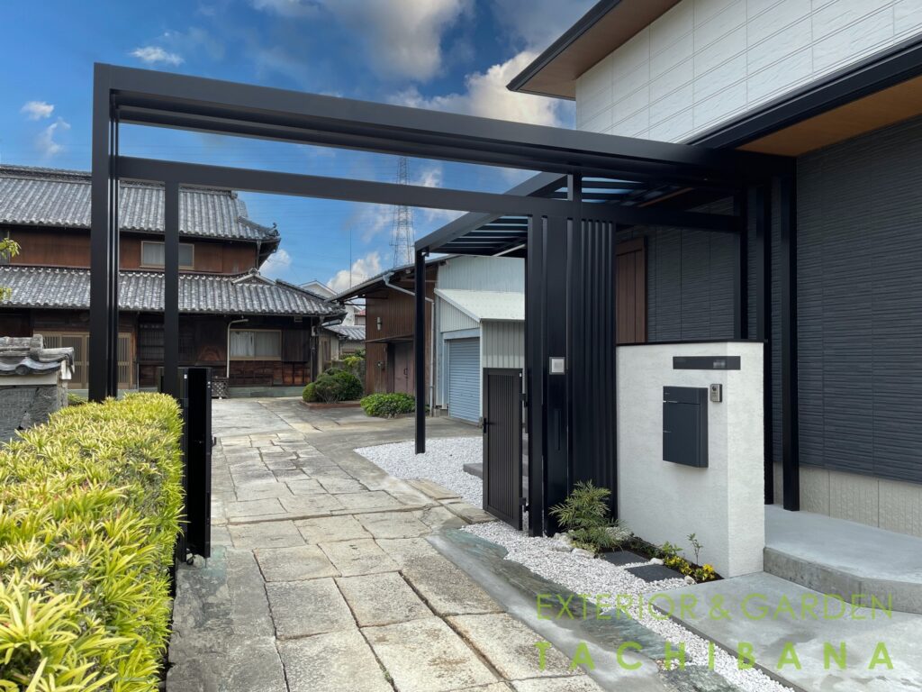 さらにYKKAPの GポートPro、植栽を組み合わせ、