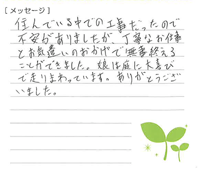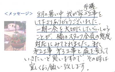 N様 : ドアホン・門灯・カーポートの取扱い説明も大変感じ良く親切にしていただいた