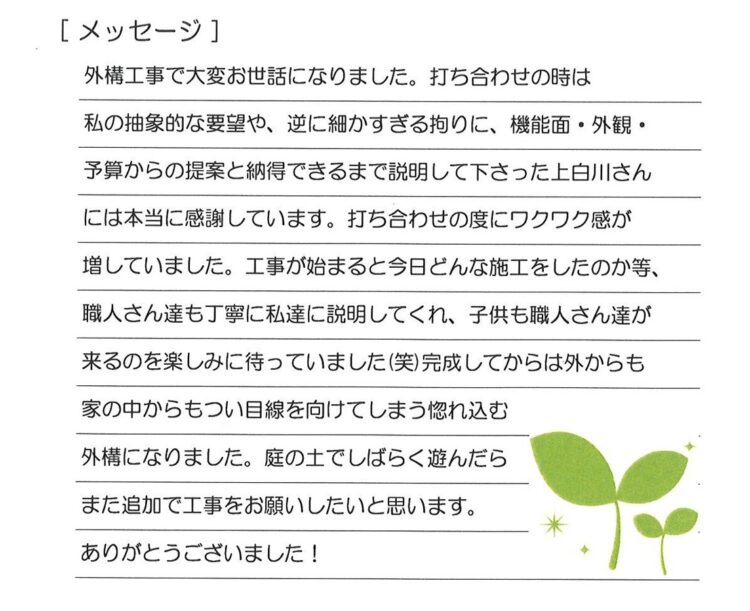 【エクステリアが完成したご感想をお聞かせ下さい。】