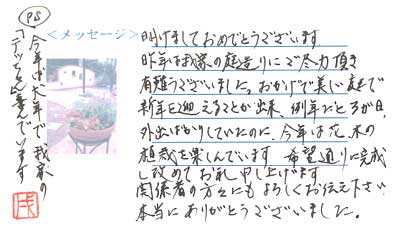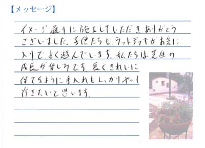 8月の暑い中、我が家の外構工事をして下さりありがとうございました。一期一会を大切にしていらっしゃることが、