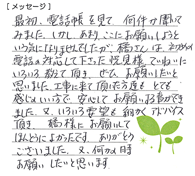 最後まで、丁寧な方々(橘さん)にして頂き、友人にもそう言っていますv
