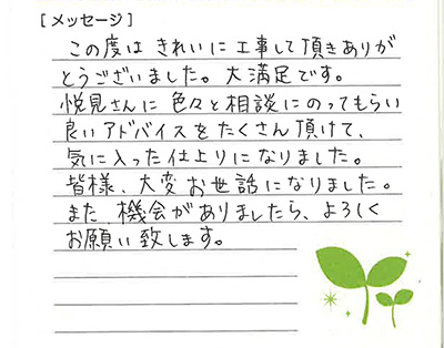 でも、マイホームが完成してとても嬉しく、心うきうきの毎日がおくれそうです。ありがとうございました。