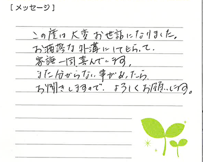 大変よかったと思います。ほんとうにありがとうございました。これからも、よろしくお願い致します。