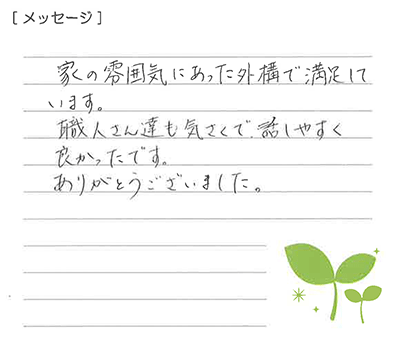 この度は、ありがとうございました。玄関まわりが美しいと、家全体がひきしまった感じがします。