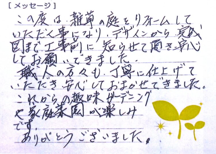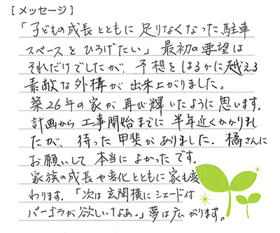 近所の人からも「とてもすてきですね」「きれいになりましたね」と、おほめの言葉をいただくたびに