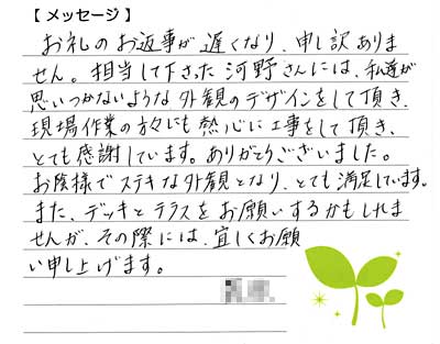 工事していただいて、本当に良かったと思います。ありがとうございました。