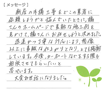 河野さんのセンスある設計とデザインが気に入り、貴社にお願いしました。