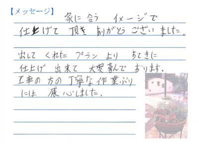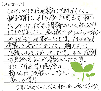 イメージ以上の仕上りのお庭に感動しています。デザイン力も抜群です。