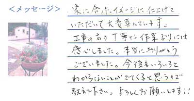 毎日の仕上がり具合を見るのが楽しみになっていました。橘さんに依頼して本当に良かったです。