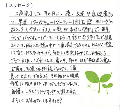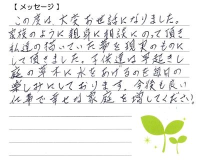 外構に関してあまり知識も無く、判らない事も多くその都度プランナーの牛尾さんに