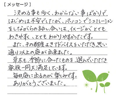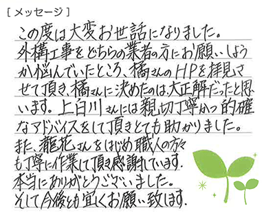 思った以上の出来に、橘様にお願いして本当に良かったと思っています。