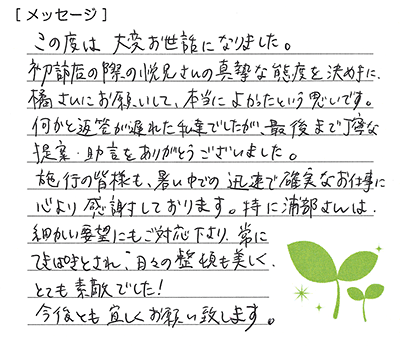 植栽についても季節毎に花が咲くよう計算して植えていただきました。
