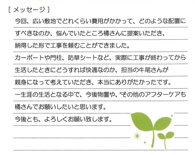 出来上がりも満足できるもので、工事を橘さんにお願いして、本当に良かったと思います。
