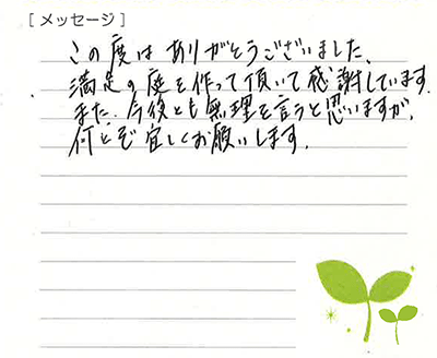 家の引きわたしから、引越までの間にしあげて頂きありがとうございました。