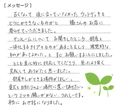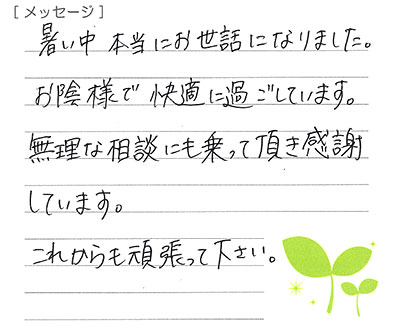 いつも後片付けまできれいで工事中も不快に思うことはありませんでした。