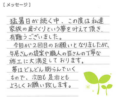 予想をはるかに越える素敵な外構が出来上がりました。