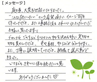 また施工して下さった職人の方々も丁寧にして下さりありがとうございました。