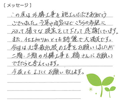 使いやすく素敵なエクステリアに仕上げてもらえました。大変感謝しています。
