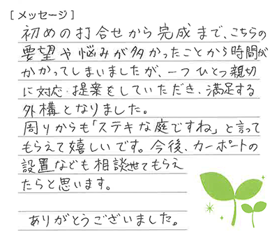 諦めかけていたウッドデッキも設置することができ、大変満足しています。