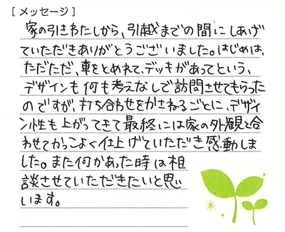 外観の希望を出すたびに図にして何回も相談に乗って頂き