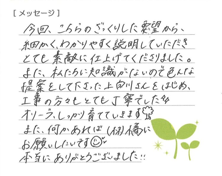 外構で雰囲気が変わってくるので、今回橘さんにお願いして