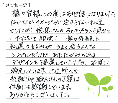 プランをしっかり示してもらえたのが1番の決め手でした。