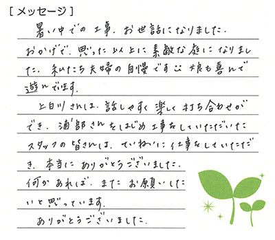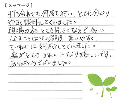橘さんでお願いしてよかったです。想像以上にステキなエクステリアになって