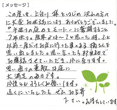 毎日庭に出るのが楽しみになるほど素敵にしていただきました。