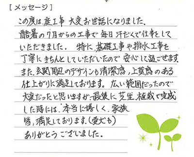 丁寧に工事していただいてありがとうございました。