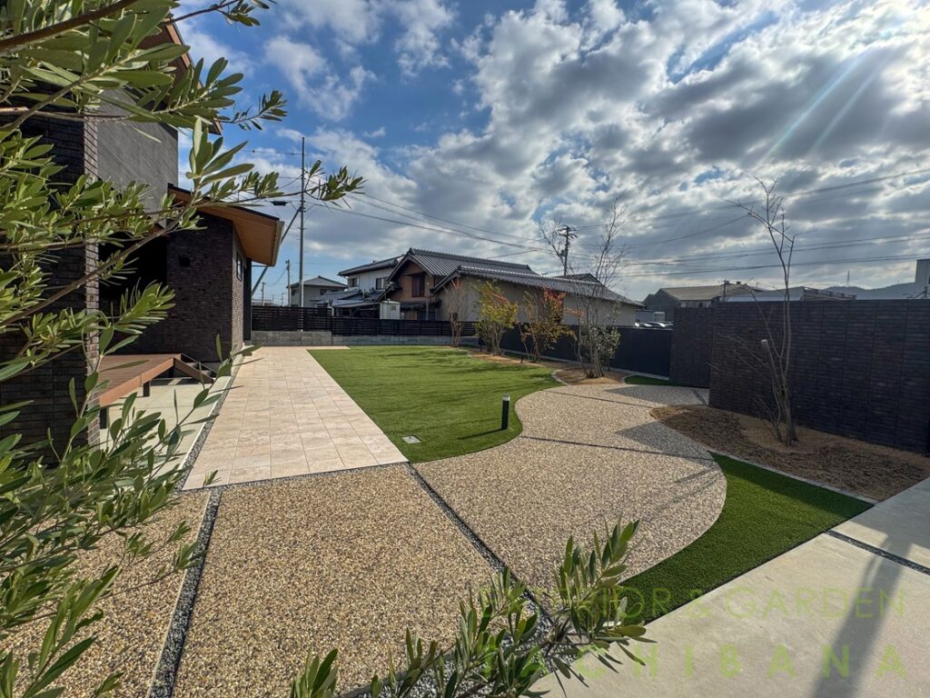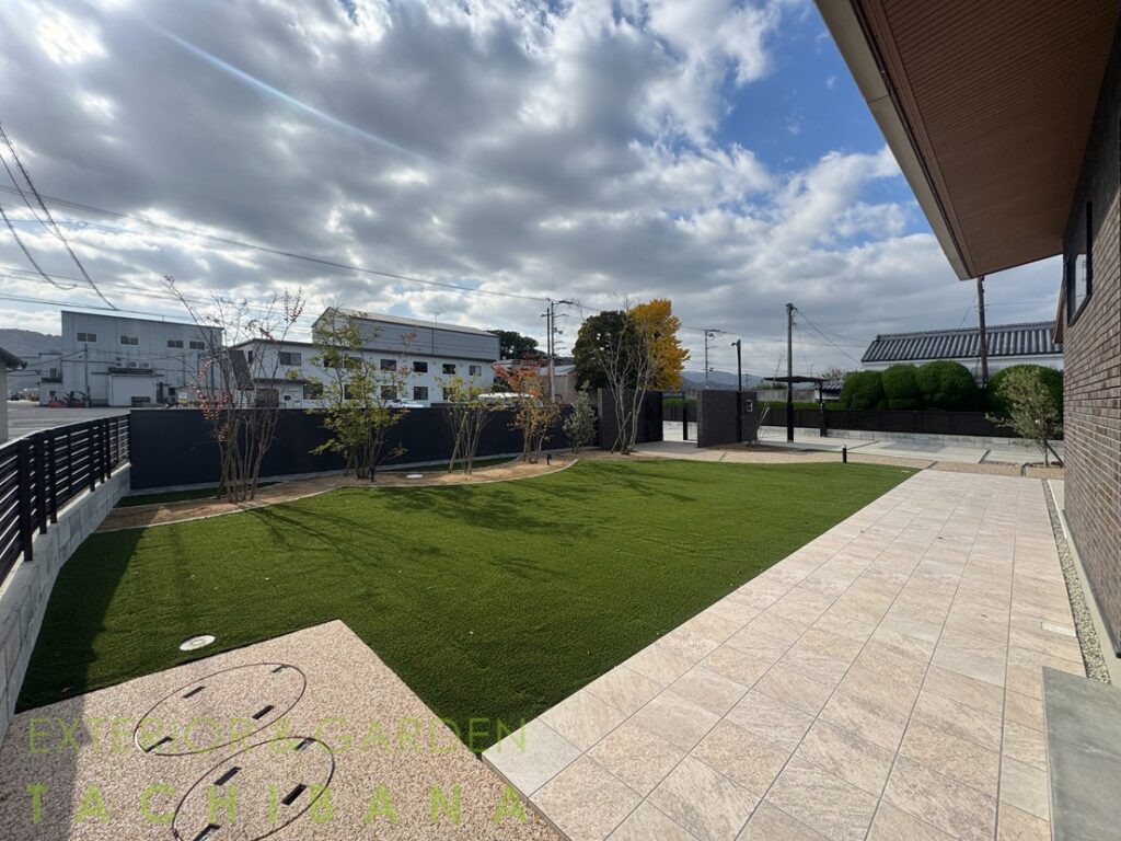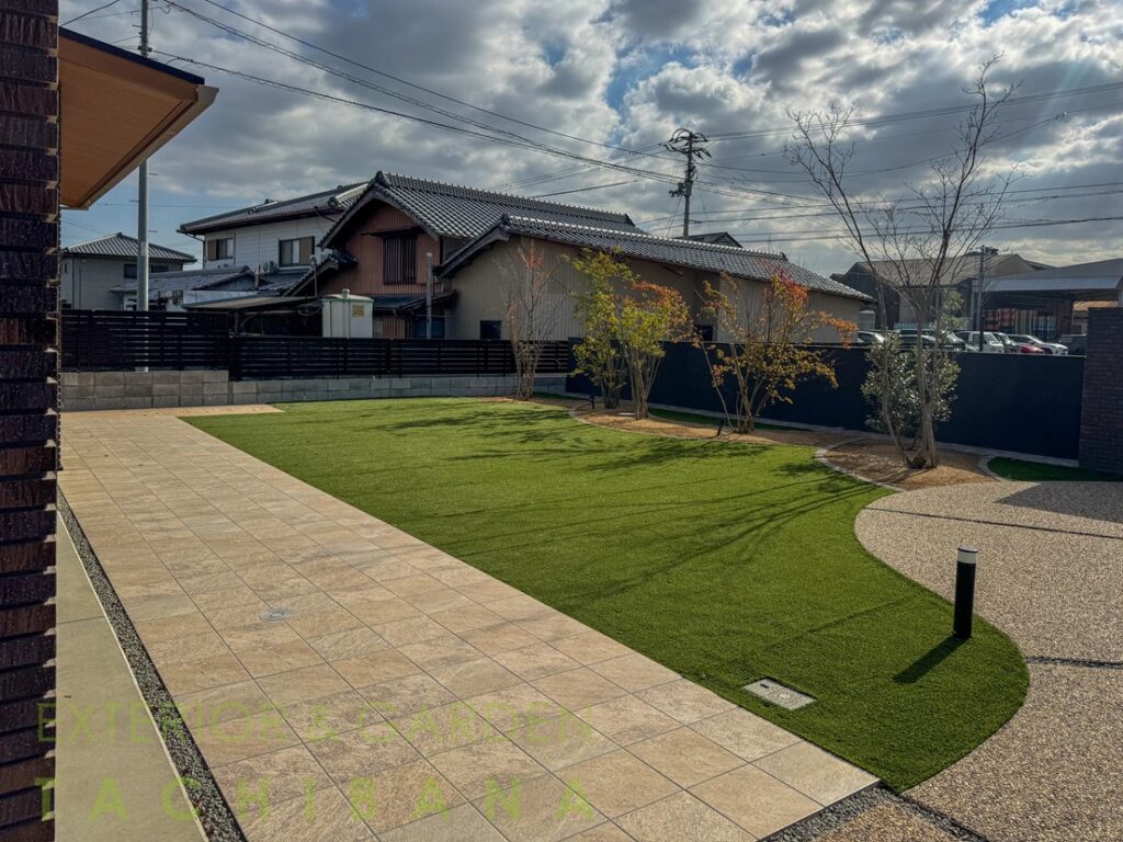 芝生のお庭を手入れのしやすい人工芝中心のお庭にリフォーム。